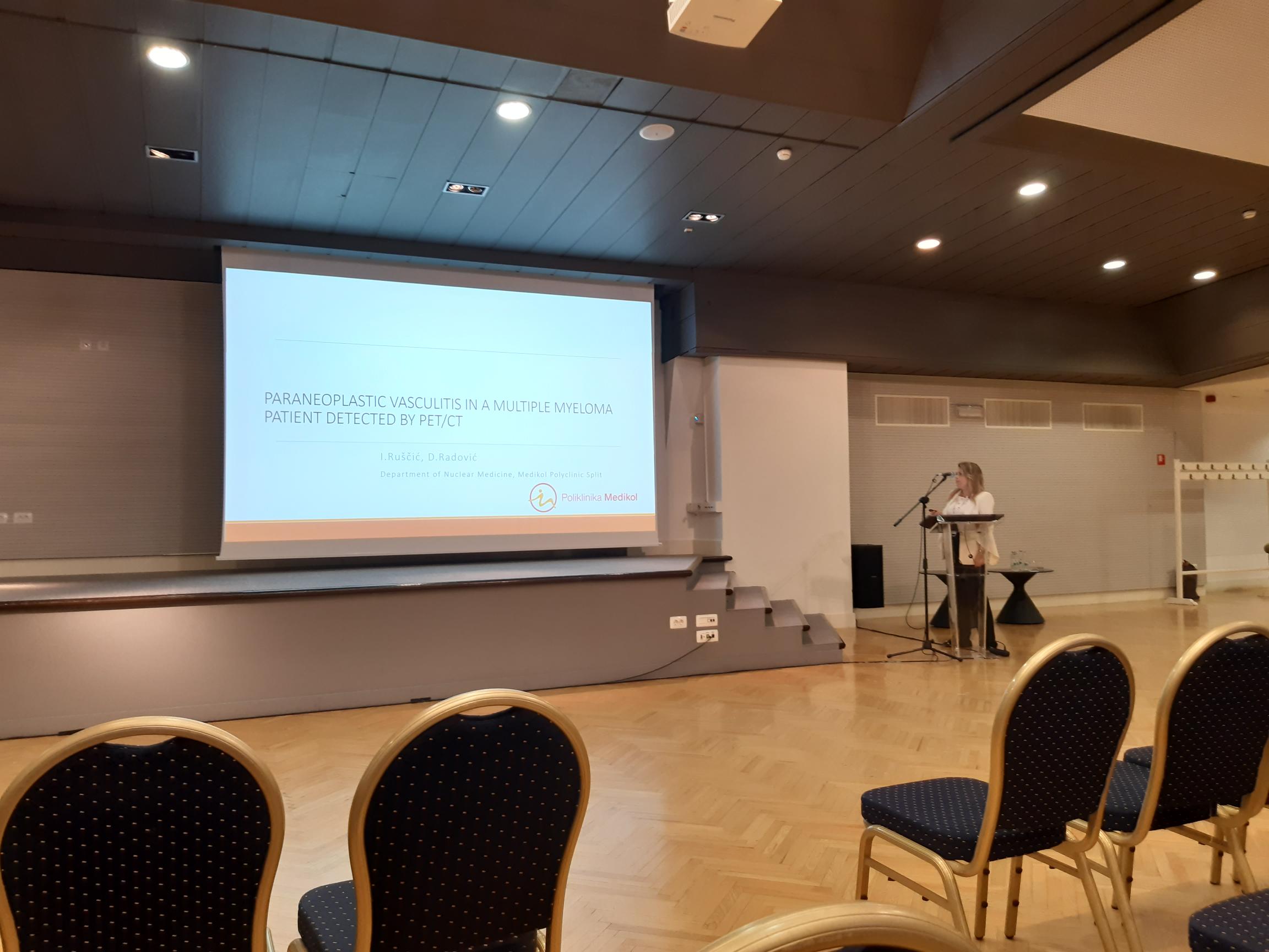 Prezentacije koje su održali mr.sc. Darijo Radović (˝Challenges in the Detection of Unknown Primary Tumor and Metastatic Neck Lymphonodes with 18F-FDG PET/CT˝) i Ivana Ruščić (˝Paraneoplastic Vasculitis in Multiple Myeloma Patient Detected by PET/CT – Case Report˝) bile su vrlo zapažene.