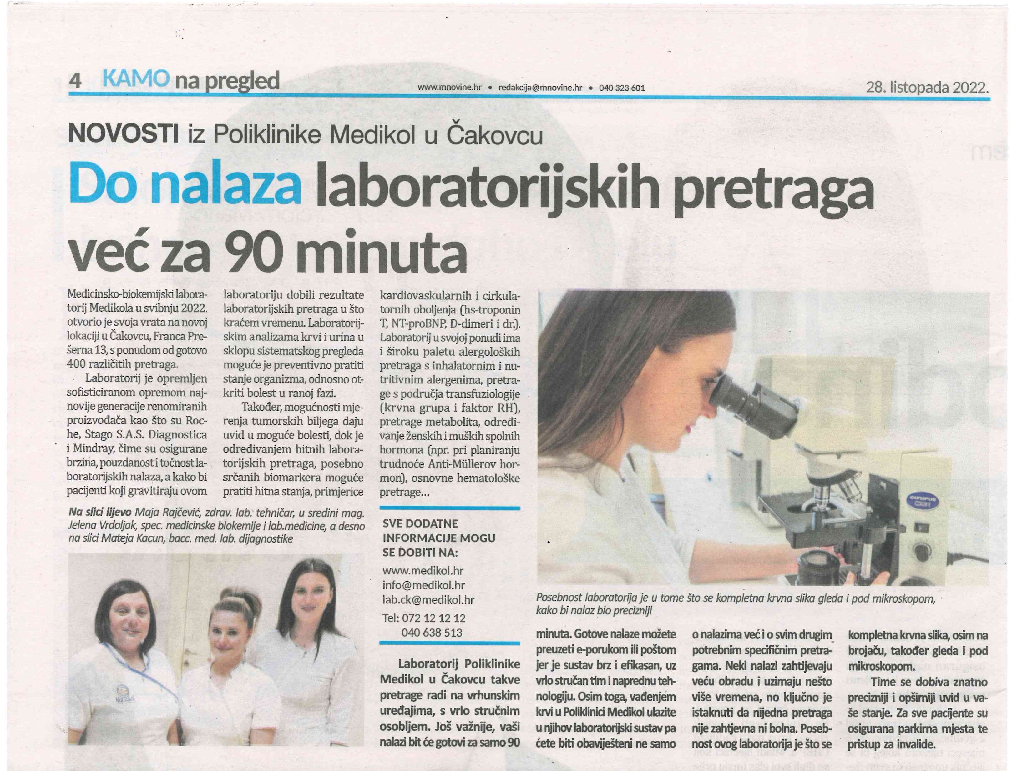 Do nalaza laboratorijskih pretraga već za 90 minuta